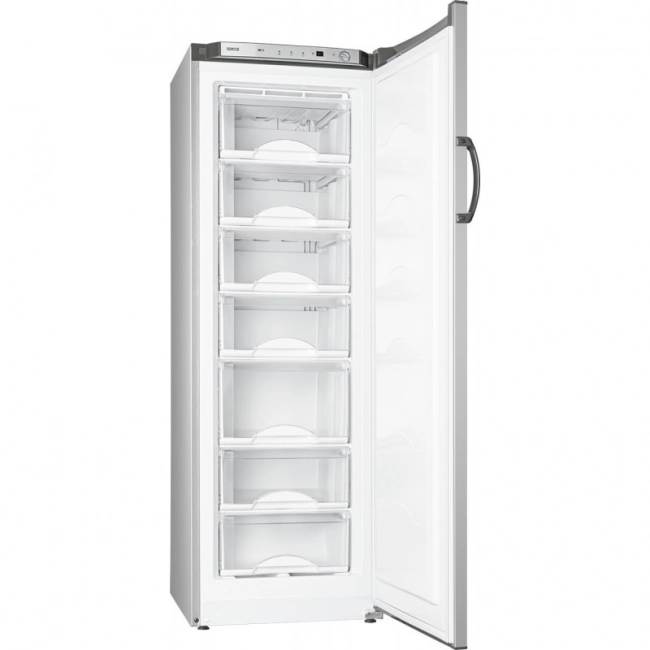 Лаконичные и строгие формы и линии дизайна морозильника подчеркивает вертикальная ручка-скоба