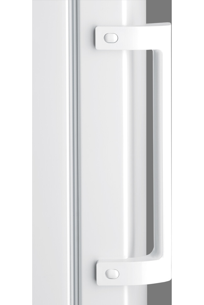 Вертикальные ручки-скобы с удобным захватом для легкого открывания двери подчеркивают строгую форму и лаконичность облика холодильника