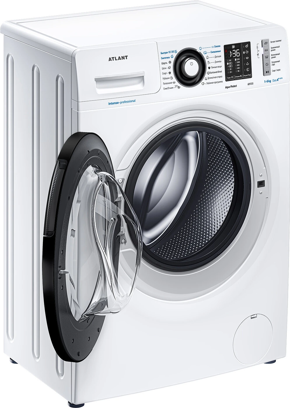 Новая стиральная машина ATLANT серии INTENSE PROFESSIONAL имеет уникальный дизайн, который прекрасно дополнит любой интерьер своим внешним видом. С помощью новых сенсорных технологий достаточно легкого касания для выбора функций и программ. Светодиодные индикаторы и сегментный дисплей машины размещены на панели управления под небольшим углом, что облегчает визуальное восприятие отображаемой информации о работе машины. Благодаря интеллектуальным программам она не только интуитивно понятна в управлении, но и обеспечивает превосходные результаты стирки при низком потреблении воды и электроэнергии. Кроме того, действует увеличенная гарантия 5 лет на двигатель.